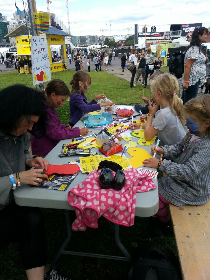 - Festivalbåndene er veldig populære. Det er veldig mange som kommer innom for å få ett, men for å få det må de tegne først, sier Heidi Karine lurt.