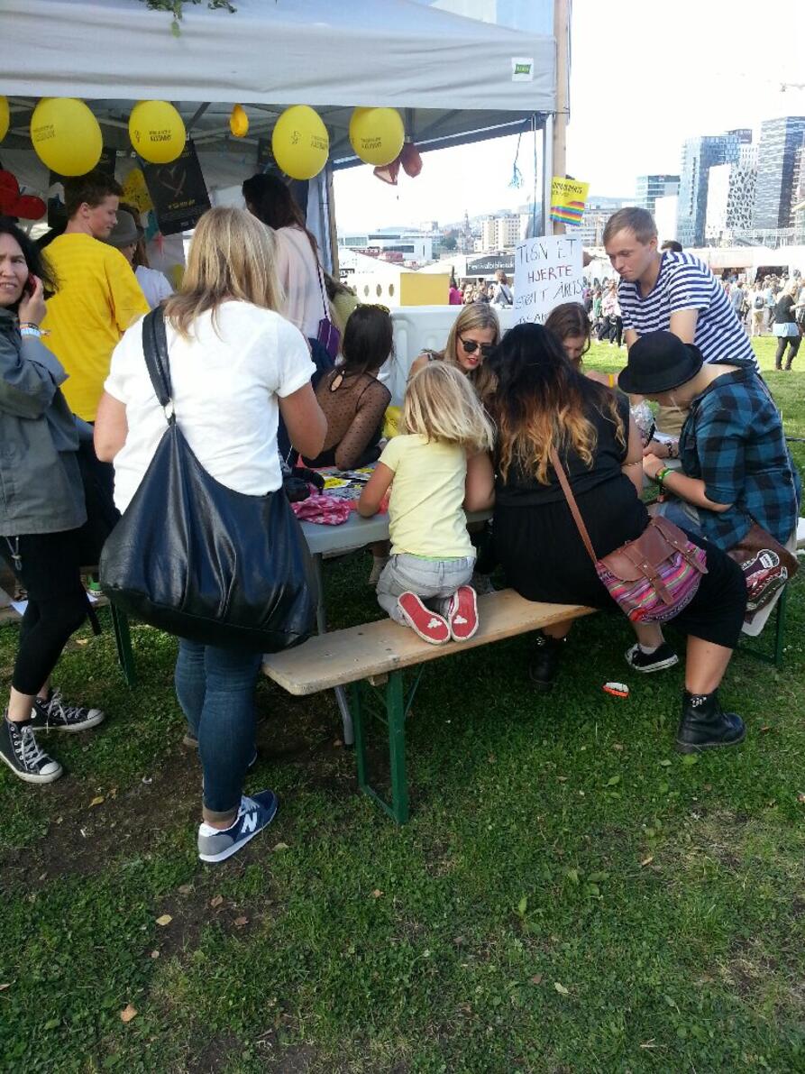 - Vi får masse kjærlighet fra festivaldeltakerne og samtidig jobber vi for en god sak. Vi får høre masse flott musikk og møter herlige mennesker som liker kampanjen. Noen av hjertene skal sendes til utsatte prider i Øst-Europa og andre skal brukes på den store kjærlighetsfesten på Youngstorget dagen før TV-aksjonen i oktober. Jeg gleder meg som en unge til å se det ferdige resultatet!